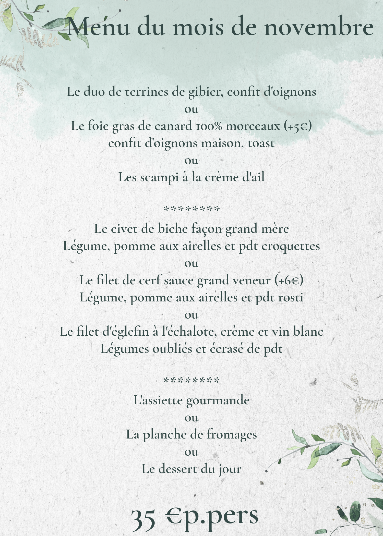 Nous sommes ravis, cuisine excellente, service impeccable et personnel très sympathique.